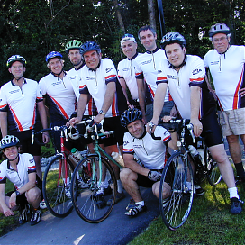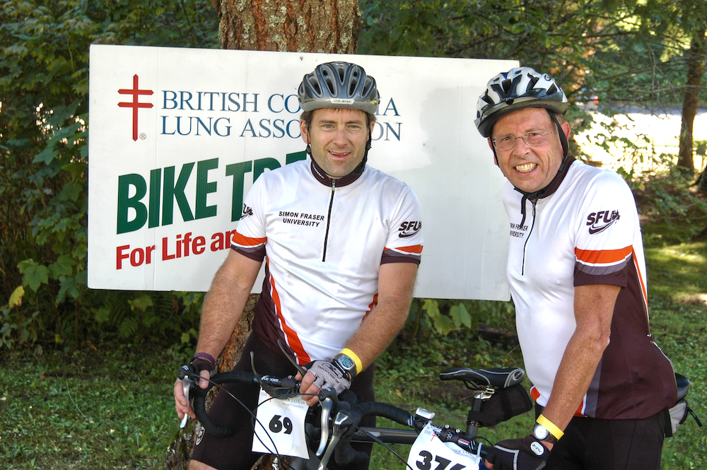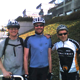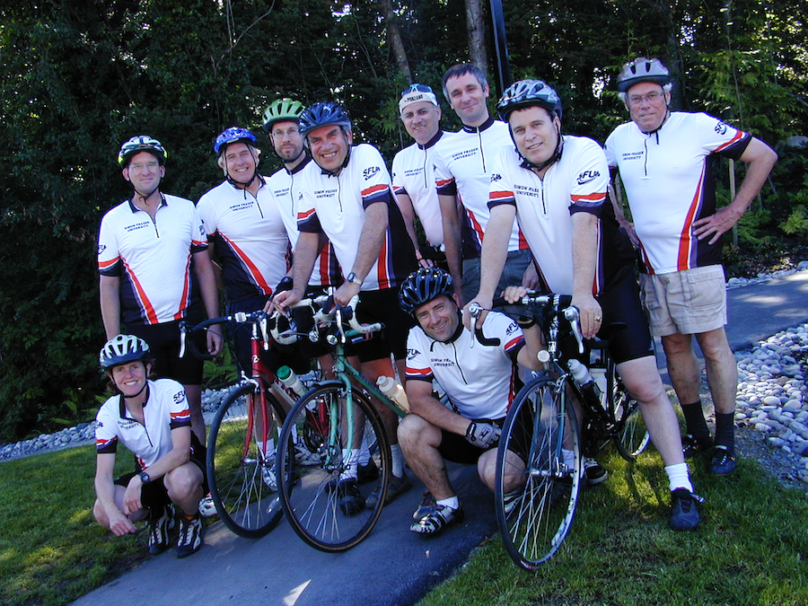 In the spring of 2005 a group of mostly middle aged faculty at SFU formed the road riding bike club velo-sfu. The club was initiated by Doug Allen of the Department of Economics, and he arranged for the production of team jerseys by a local supplier. Club membership varied between the original 10 and up to 20 memebers at various times. The group hung together for a number of years until many started to retire. By about 2010 it was pretty much finished, although a few of us continue to ride together from time to time.