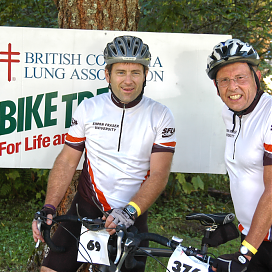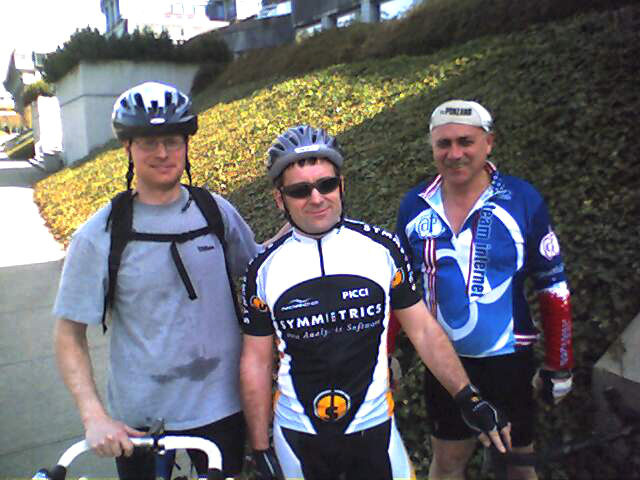 Here we are as a team up on Burnaby Mountain: From left to right: David, Dan, Craig, Tom Poiker, Walter, Simon, Jerry Sheppard, Leigh, with Gwen and Doug on bottom. What an athletic group!
